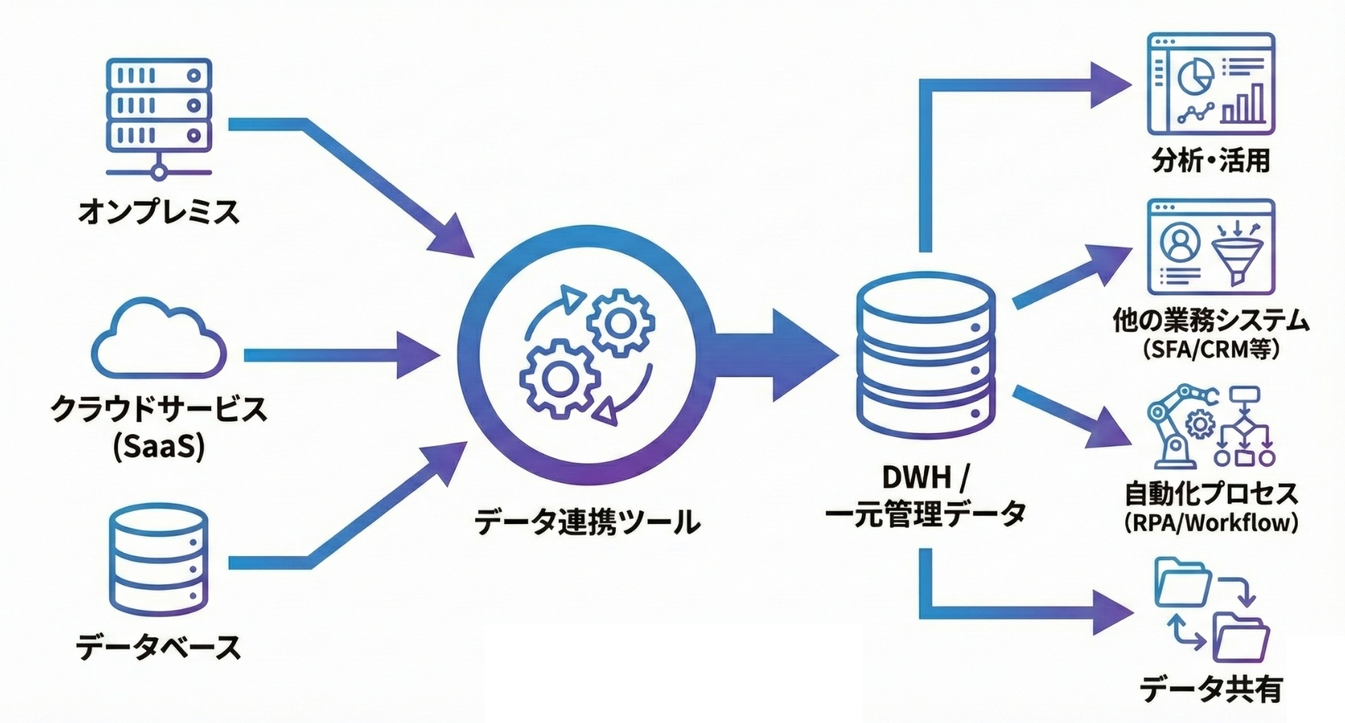 近年は、オンプレミスとクラウド、SaaSが混在するような複雑な運用環境が増えており、こうしたツールを使うことで、複数システムをまたぐデータの流れを効率化し、業務や分析の柔軟性を高めることができます。