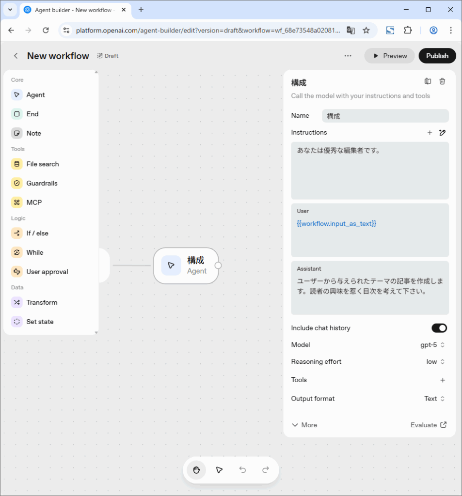 OpenAI DevDay 2025でAgent Builderが発表になりました。今までマルチステップエージェントを構築する場合、Agent SDKでプログラムする必要がありました。Agent Builderを使えばGUIで構築できます。Agent Builderの基本的な作り方を解説します。