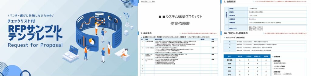 「システム開発やWebサイト制作に向けて、社内の要件をスムーズに整理したい」 「抜け漏れのないRFPを作成して、プロジェクトを効率的にスタートさせたい」